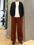 カラーパンツがアクセントのシンプルな カーディガンのカジュアルコーデ