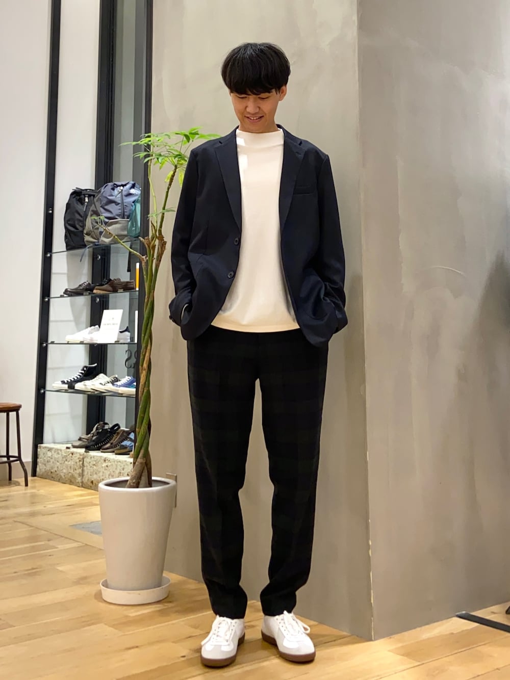 ジャケットにカットソーとチェックパンツで 合わせてカジュアルダウン Instagram:@slnojo