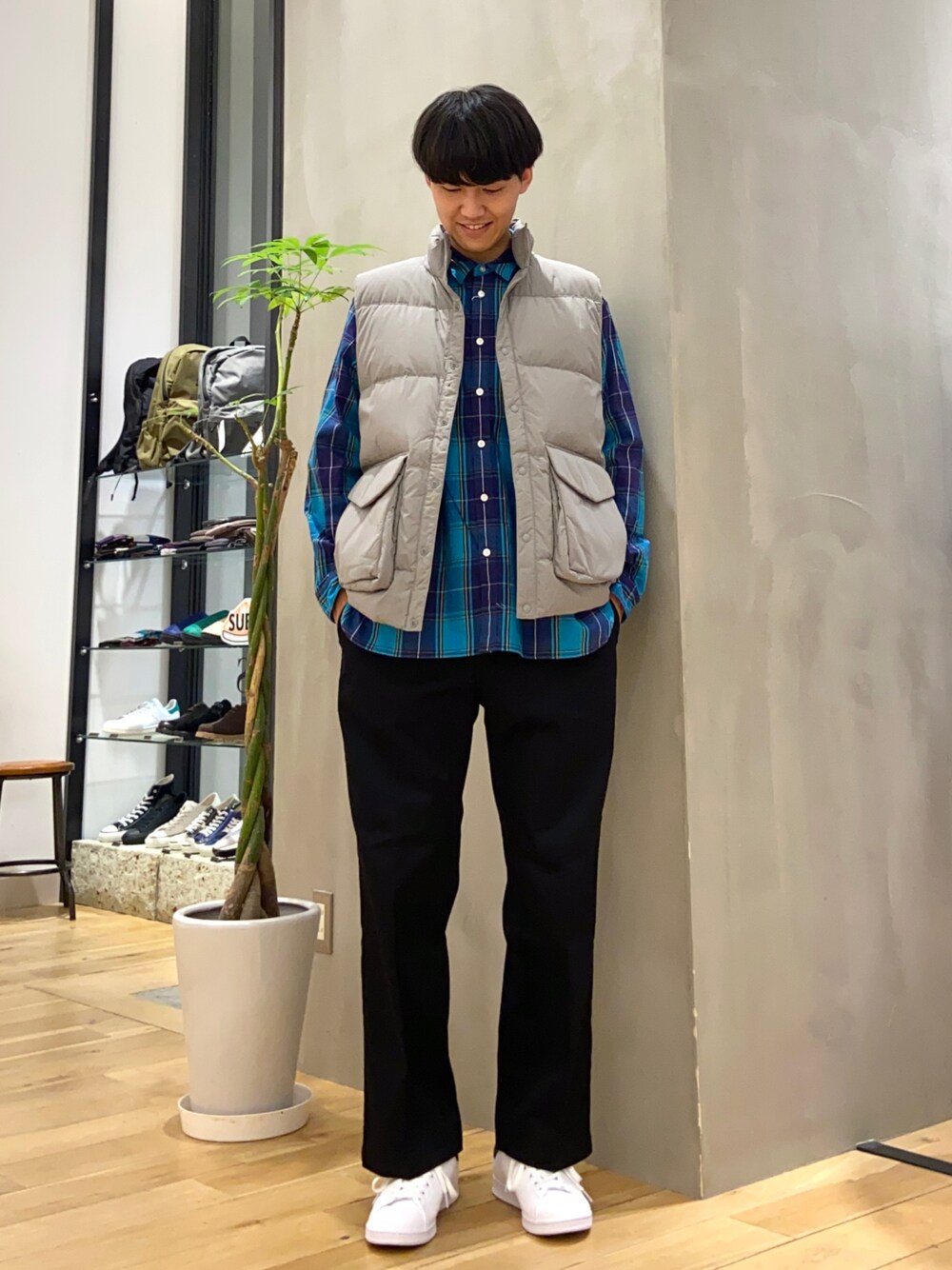 ショウゴ(UR Store タカシマヤ ゲートタワーモール)のダウンベスト「『別注』snow peak apparel×DOORS R/N Ripstop Down Vest」を使ったコーディネート