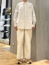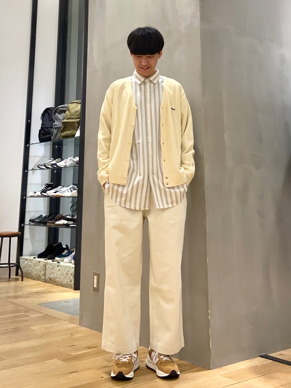 カーディガンのワントーンコーデ ストライプシャツとシューズでアクセント Instagram:@slnojo