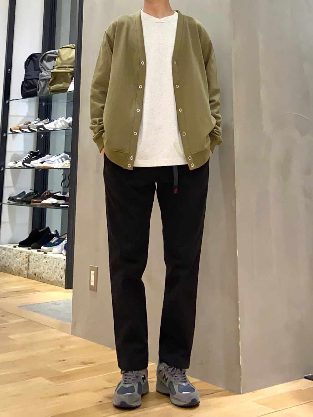 スウェット生地のカーディガンで ラフな雰囲気のカジュアルコーデ