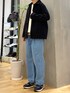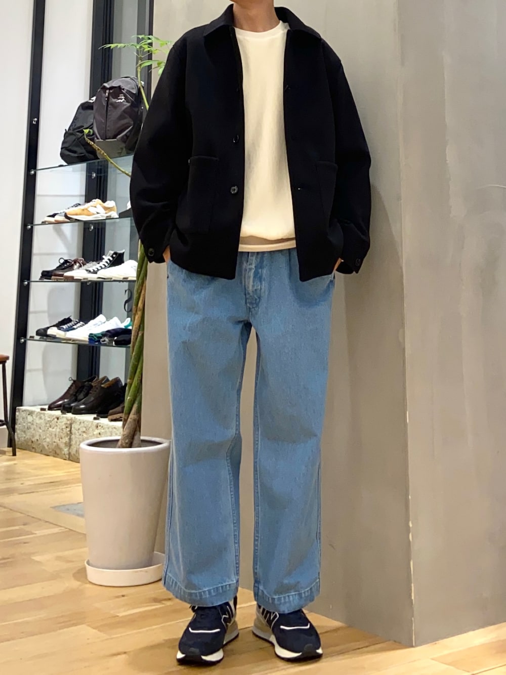 デニムアイテムでコートをカジュアルダウン シンプルなゆったりコーデ