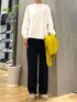 アクセントカラーのカーディガンを使った シンプルなゆったりカジュアルコーデ Instagram:@slnojo