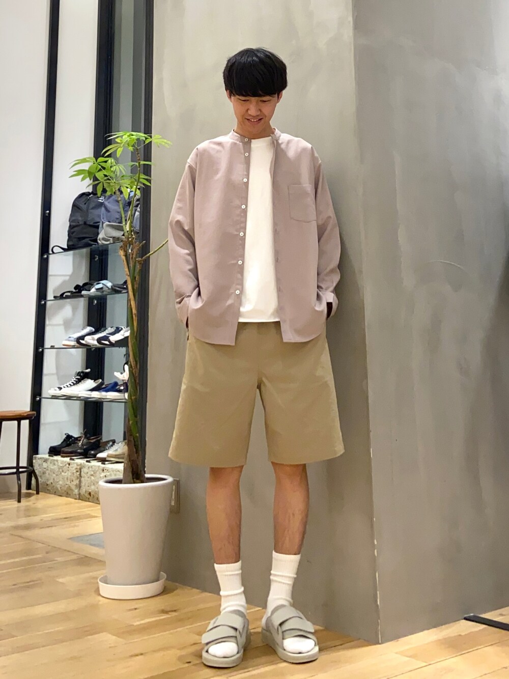 柔らかな色合いで合わせた シャツとショーツの春夏コーデ Instagram:@slnojo