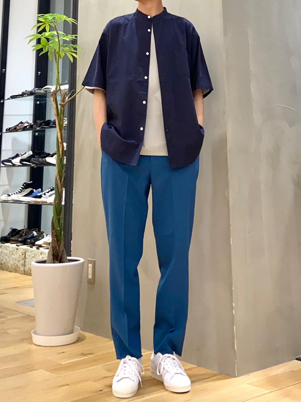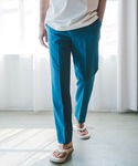 カラーパンツがアクセントの 爽やかなシャツコーデ