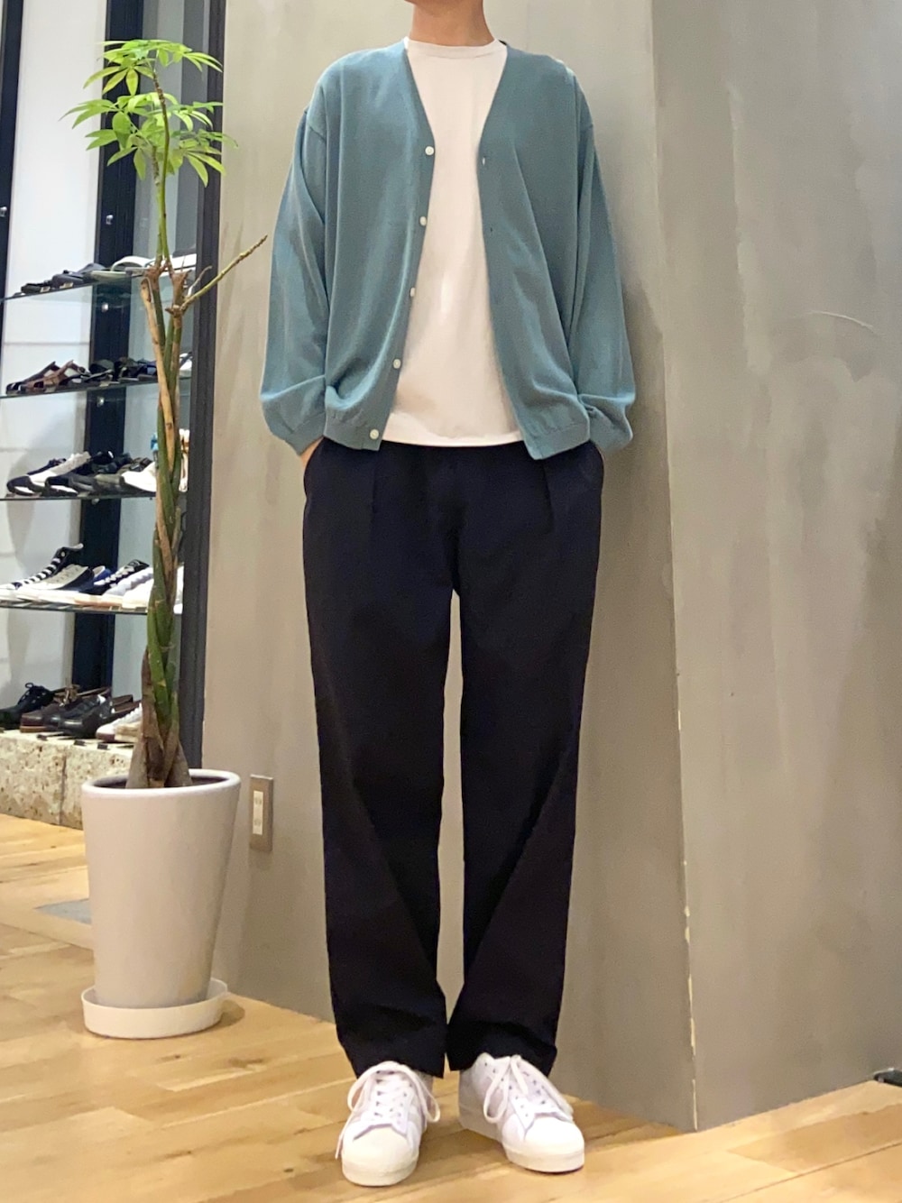 ショウゴ(UR Store タカシマヤ ゲートタワーモール)のカーディガン/ボレロ「強撚Vネックカーディガン」を使ったコーディネート