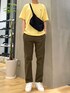 カラーがアクセントのシンプルな 夏のラフな大人カジュアルコーデ