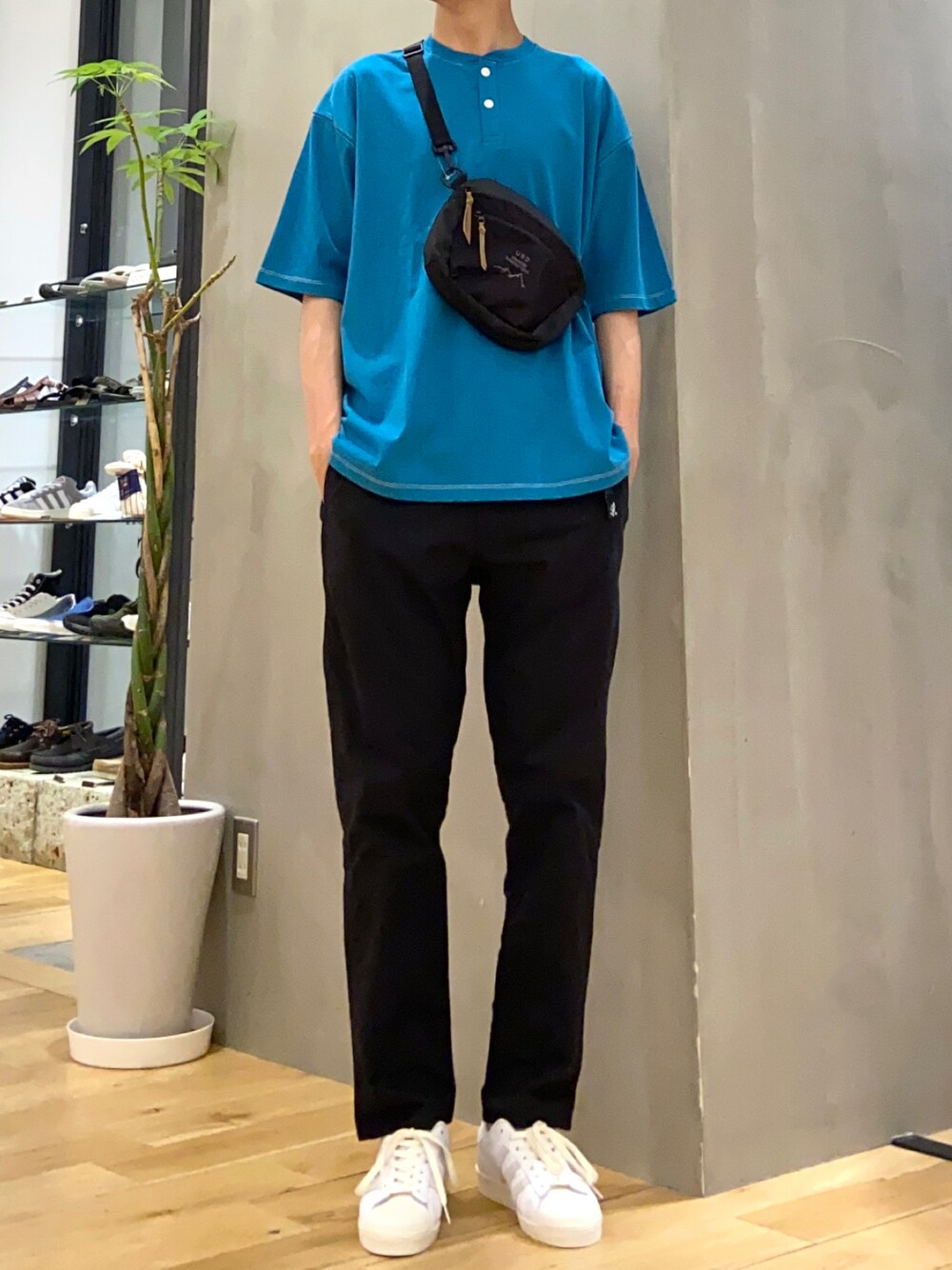 ショウゴ(UR Store タカシマヤ ゲートタワーモール)のTシャツ/カットソー「配色stヘンリーネックショートスリーブTシャツ」を使ったコーディネート