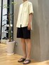 カラーがアクセントになる シャツスタイルのカジュアルコーデ Instagram:@slnojo
