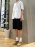 爽やかな色合いにショーツで夏らしく シャツを合わせてこなれ感も
