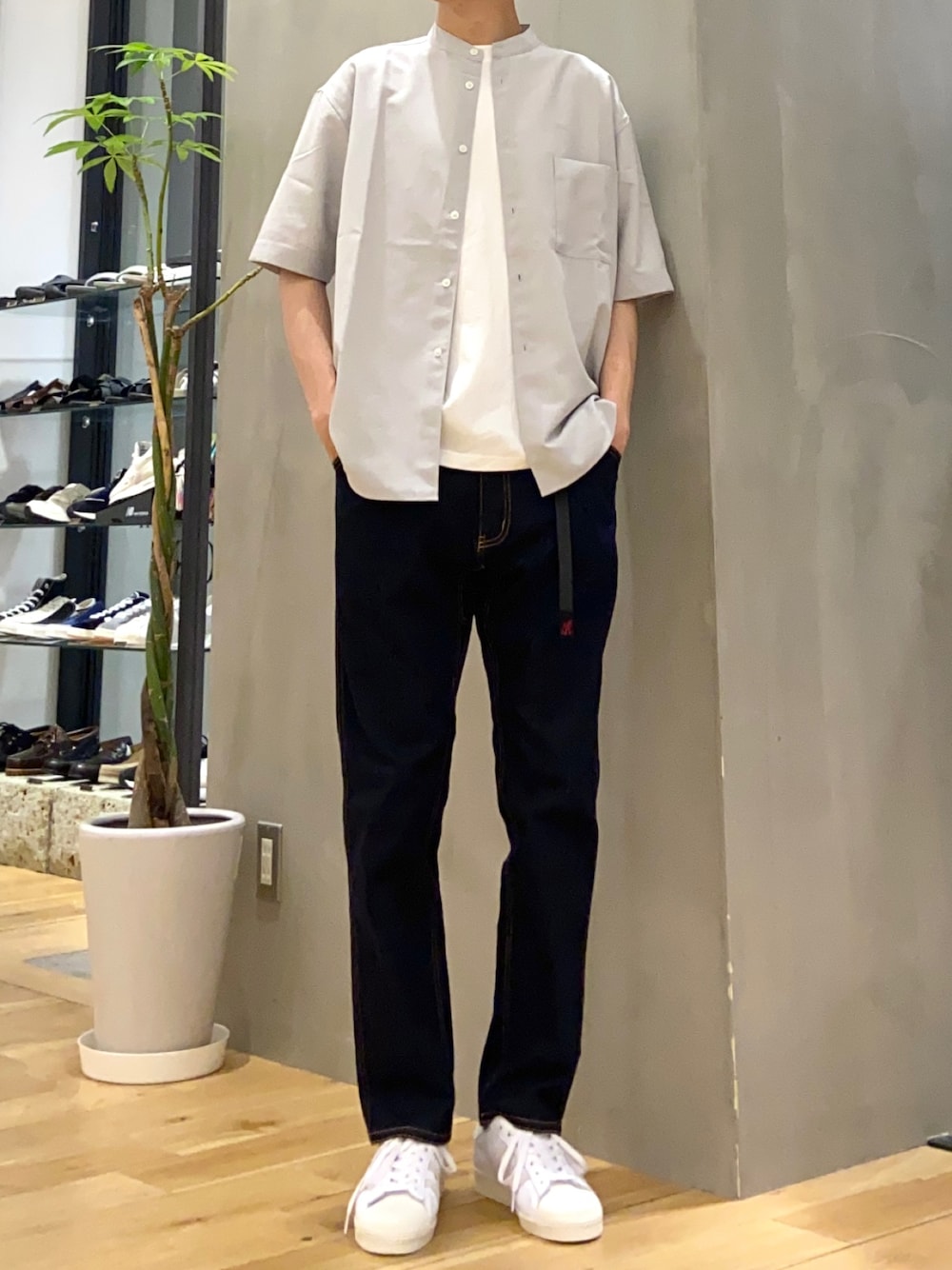 ショウゴ(UR Store タカシマヤ ゲートタワーモール)のシャツ/ブラウス「『吸水速乾』セオアルファバンドカラーショートスリーブシャツ」を使ったコーディネート