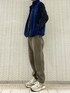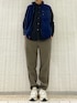 シャツと合わせたフリースベストの タウンユースカジュアルコーデ