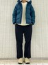 カラーがアクセントのアウターを 羽織ったゆったりカジュアルコーデ
