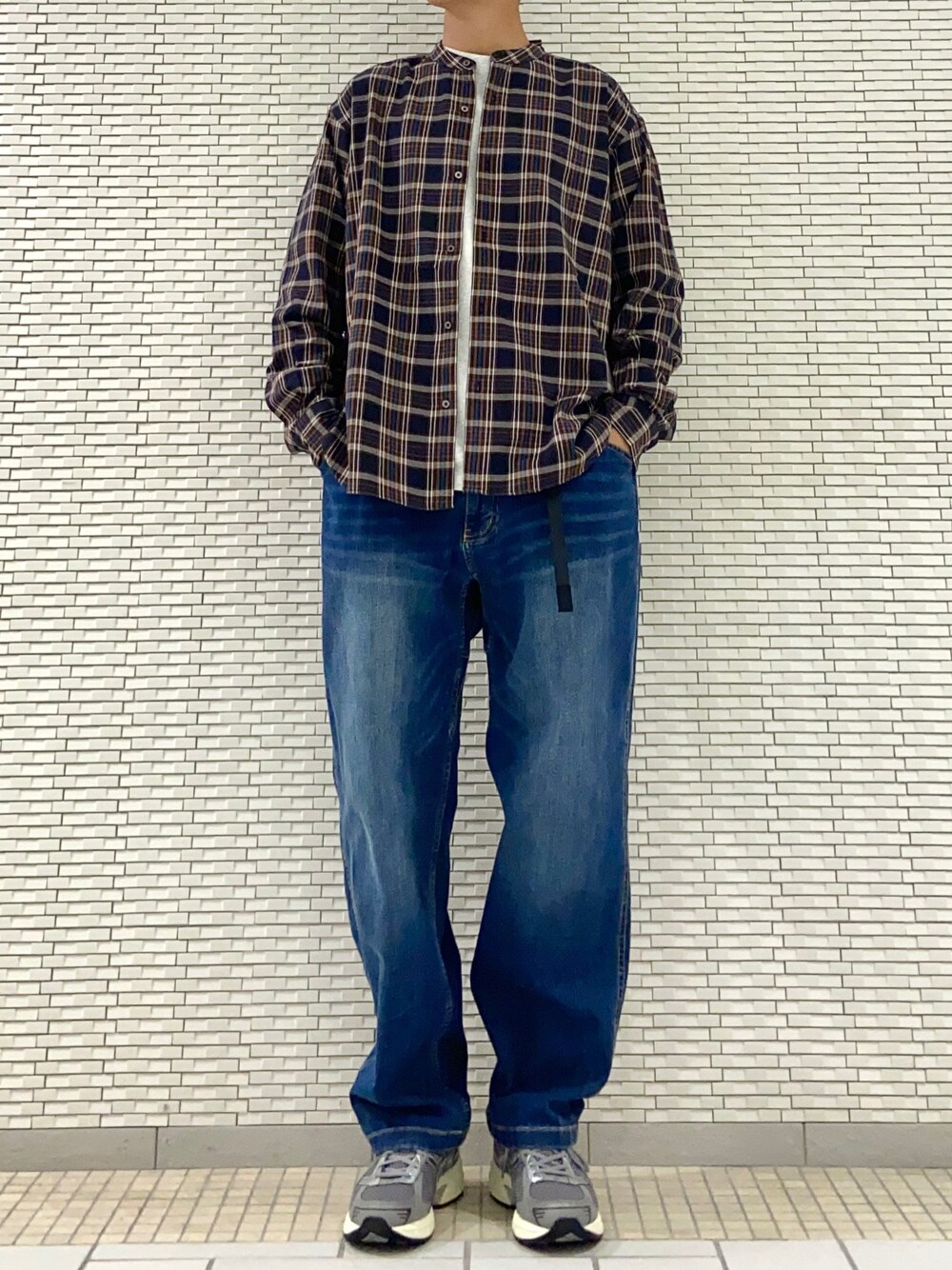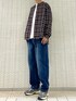 チェックシャツをデニムで 合わせカジュアルに