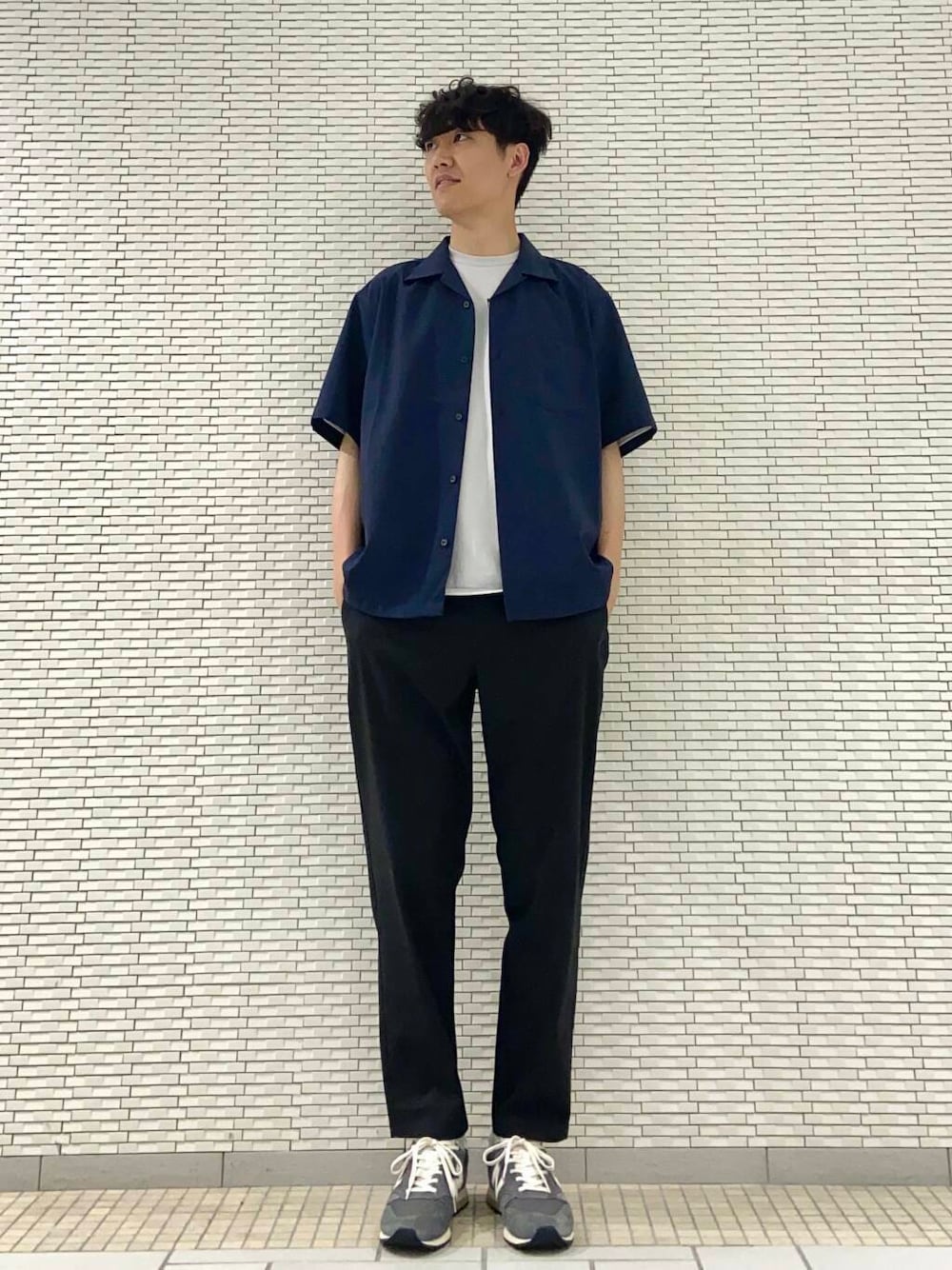落ち着いた雰囲気に合わせたシャツコーディネートです。 ボトムのNEW BALANCE ツイルテーパードトラウザー (ショート)は生地もサラッとしていて夏から使いやすい 仕上がりのアイテムです! シルエットもスッキリとしているので大人っぽく 合わせることができます!