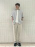 シャツスタイルで合わせた大人カジュアルコーディネートです。 ボトムのTRツイルテーパードトラウザーはイージー 仕様でもも周りにも程よいゆとりがあり穿き心地の 楽なアイテムです! テーパードが効いているのでスッキリとして大人 らしい雰囲気にも落とし込めます!
