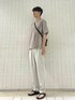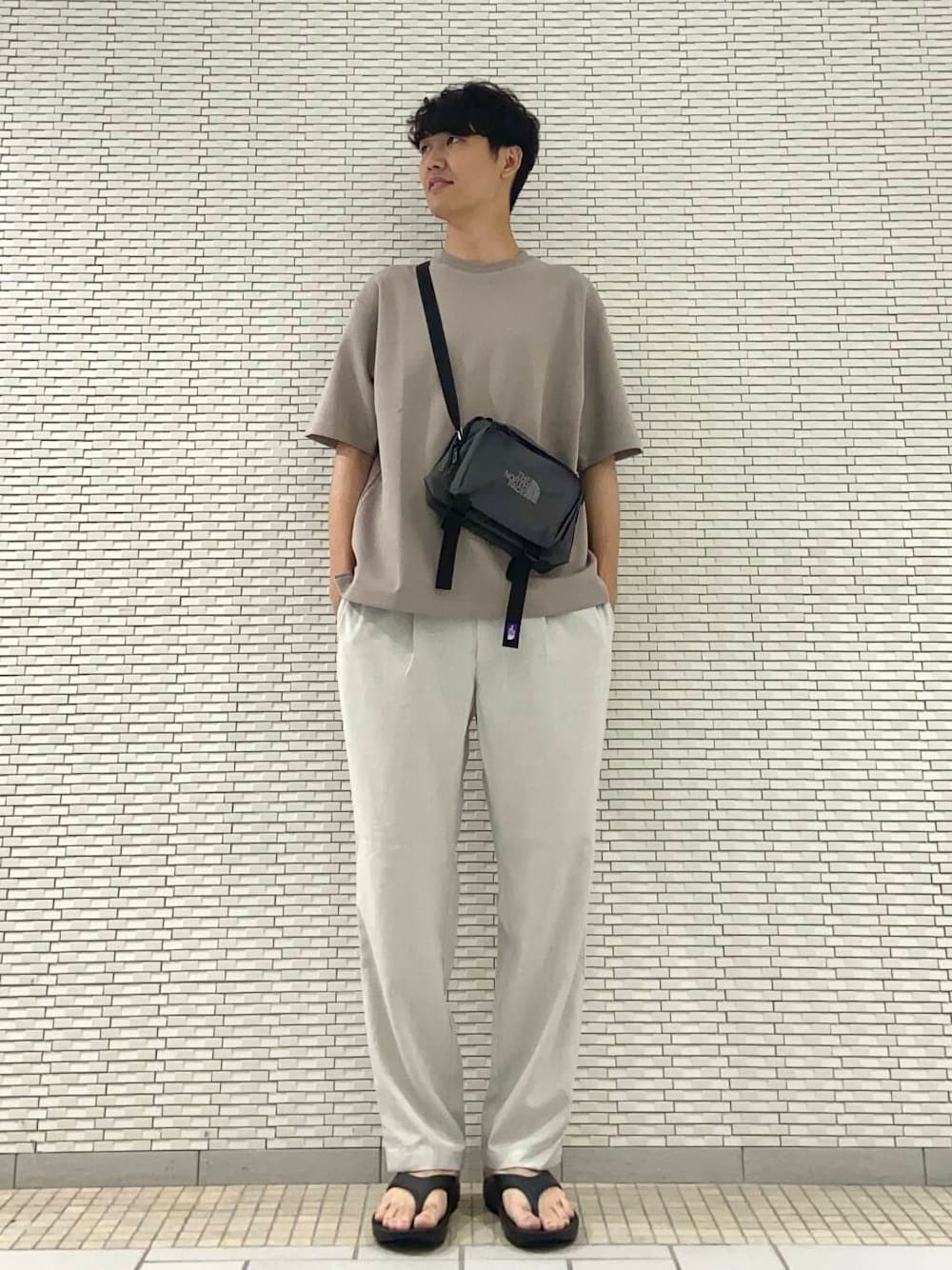 淡く合わせたシンプルなカジュアルコーディネートです。 トップスのストレッチダンボールショートスリーブ Tシャツは柔らかくなめらかな肌触りで着心地の良い アイテムです! 生地はしっかりしておりシンプルながらゆったり シルエットで着こなしいただけます!