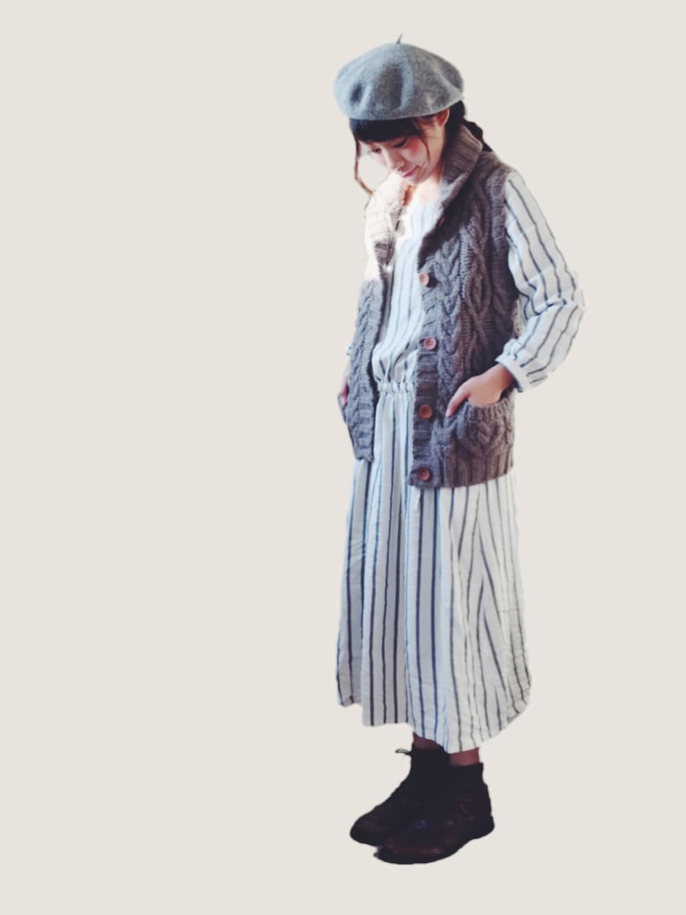 こんにちわ 〜 ニットベストって 着るタイミングなく いつも季節がおわってしまうので 今日こそは!と やっと着れました〜 ☀︎ そんな今日のコーデさんです ワンピースは WEAR始めて間もない頃着た 色違いという 、、、 (笑) なんだかこの帽子ばかり 被っている最近です。 娘にベレー帽かぶせるので お揃いにしたくてつい〜 晩御飯なにつくるか迷います ( ´;o;` )