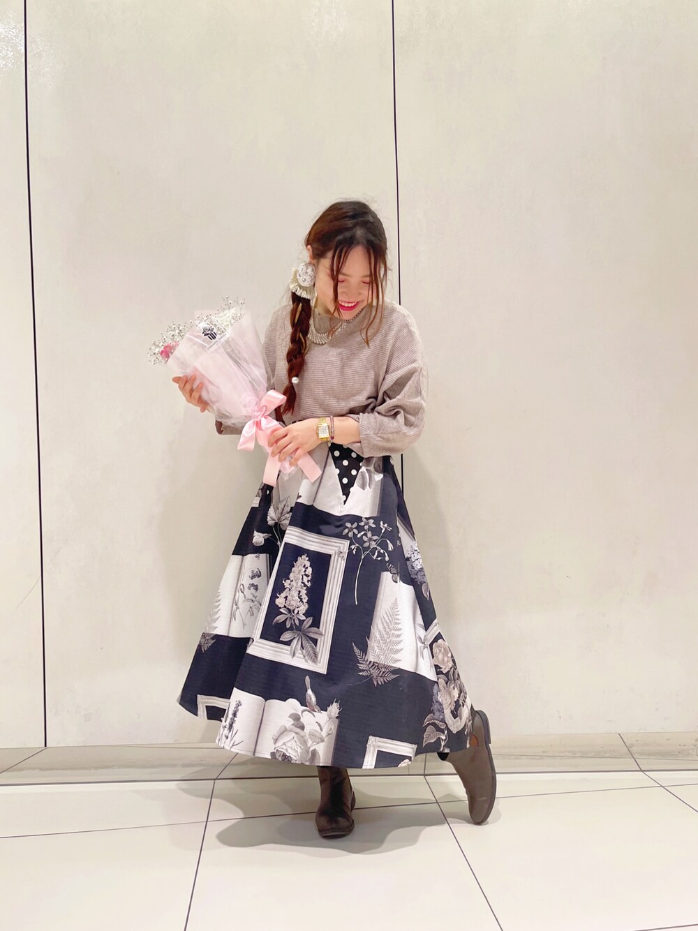 おはようございます☀ お客さまから頂いた 花束と撮影しました👀❤️
