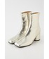 ホワイト×ライトブルーの大人シンプルコーデ。全体的に淡くぼやけやすい為、足元はゴールドで女性らしくかつポイントに。