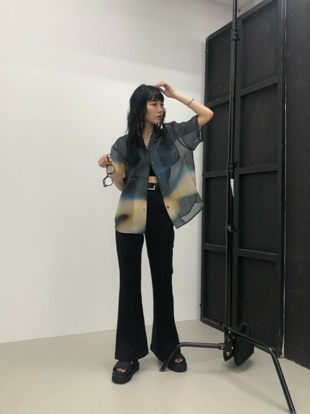 SLY official(SLY official)のスラックス「THROW TEXTURE CUT BELL BOTTOM ベルボトム」を使ったコーディネート