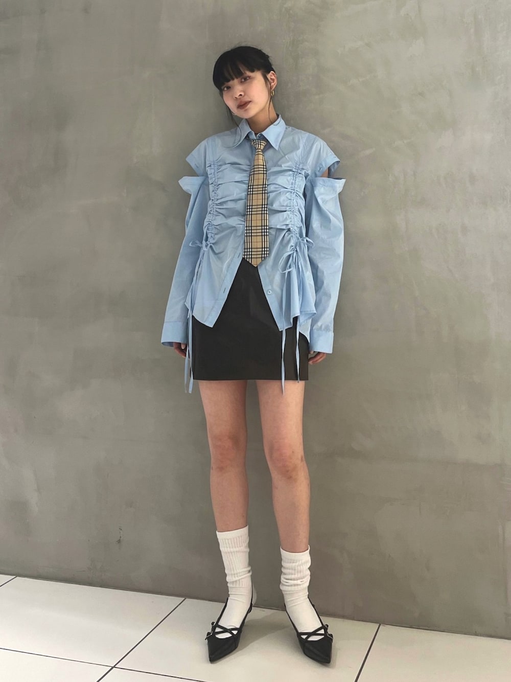 SLY official(SLY official)のシャツ/ブラウス「【再入荷】OPEN SHOULDER DROST SH オープン ショルダー ドロスト シャツ リボン」を使ったコーディネート