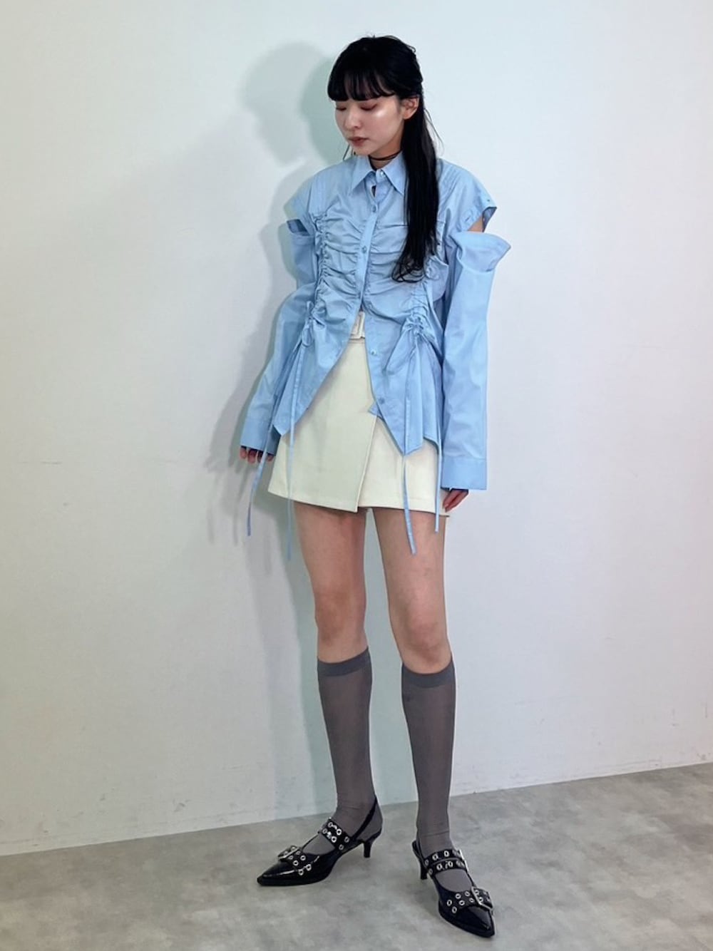 SLY official(SLY official)のシャツ/ブラウス「【再入荷】OPEN SHOULDER DROST SH オープン ショルダー ドロスト シャツ リボン」を使ったコーディネート