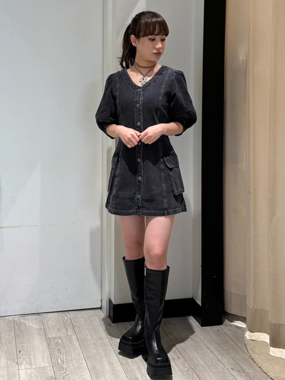 SLY official(SLY official)のワンピース「V NECK DENIM S/OP ヴイネック デニム ショート ワンピース」を使ったコーディネート
