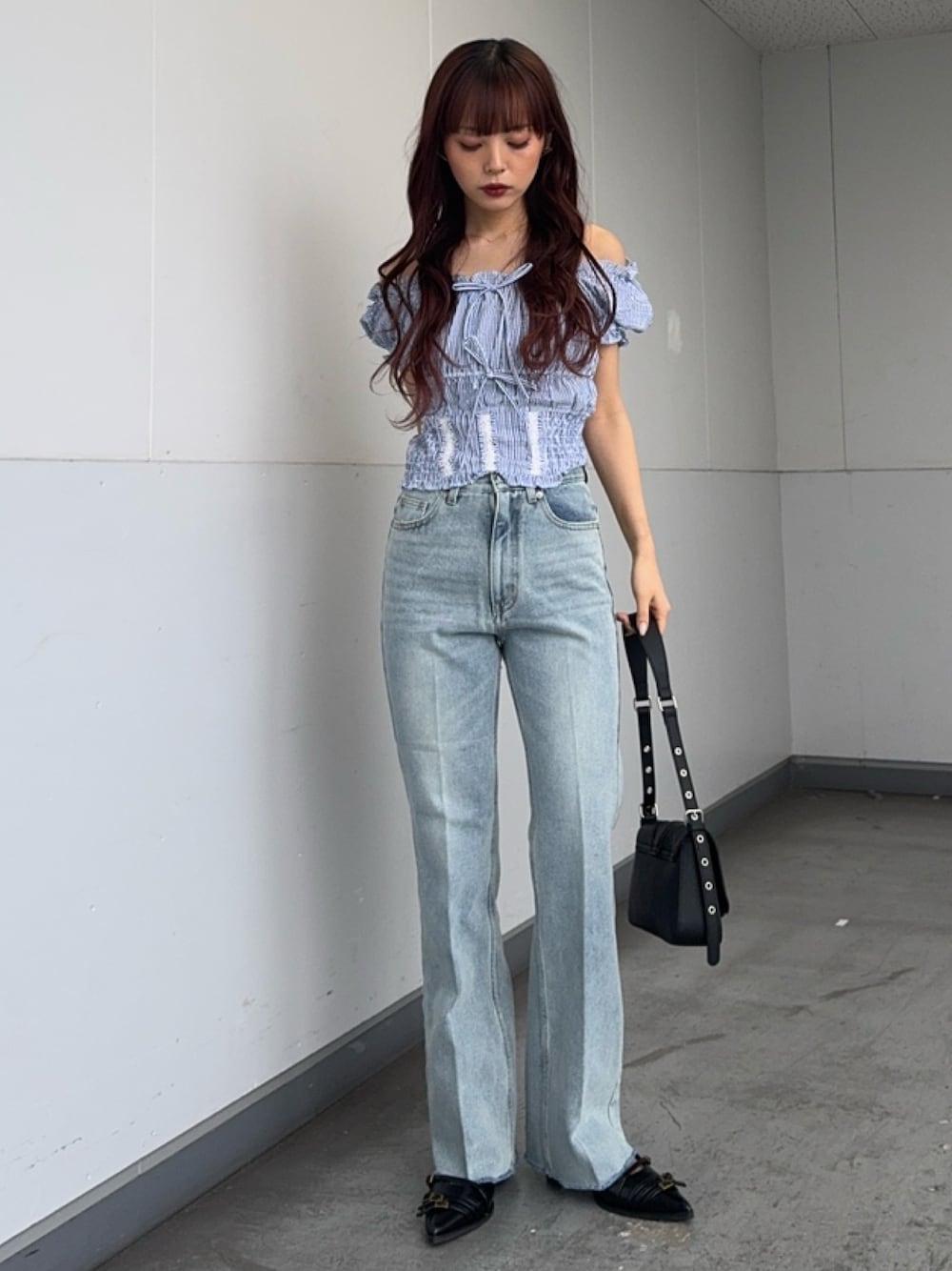 SLY official(SLY official)のデニムパンツ「【WEB限定】J/W SEMI FLARE PT ジャストウエスト セミフレア デニムパンツ」を使ったコーディネート