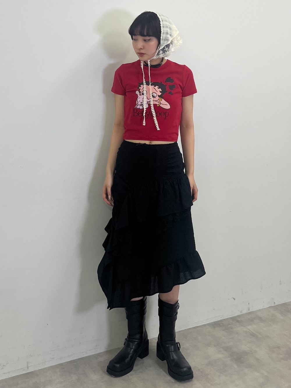 SLY official(SLY official)のバンダナ/スカーフ「LACE EDGE SCARF レース エッジ スカーフ」を使ったコーディネート