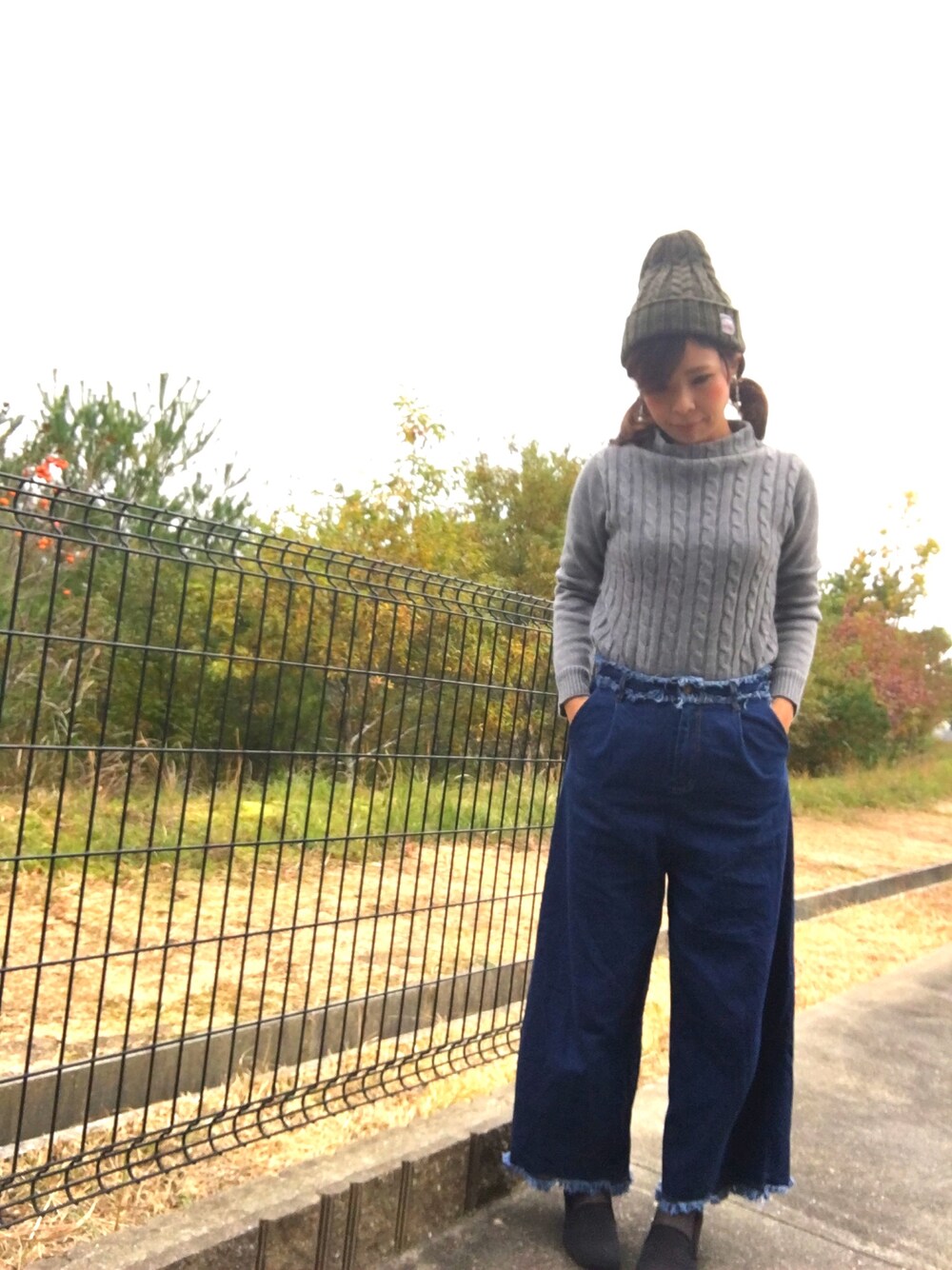 ボトルネックのニット デニムのガウチョ