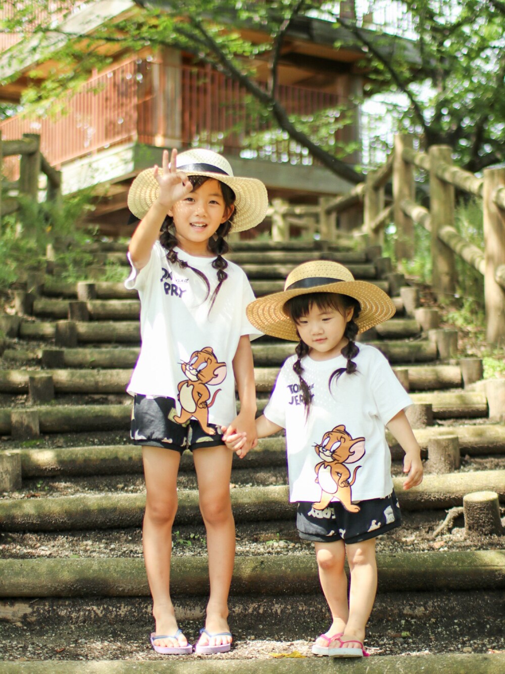 ダイソーの麦わらとビーサン 上下韓国子供服と激安プチプラコーデ🤭 全身で1500円いかないか?笑