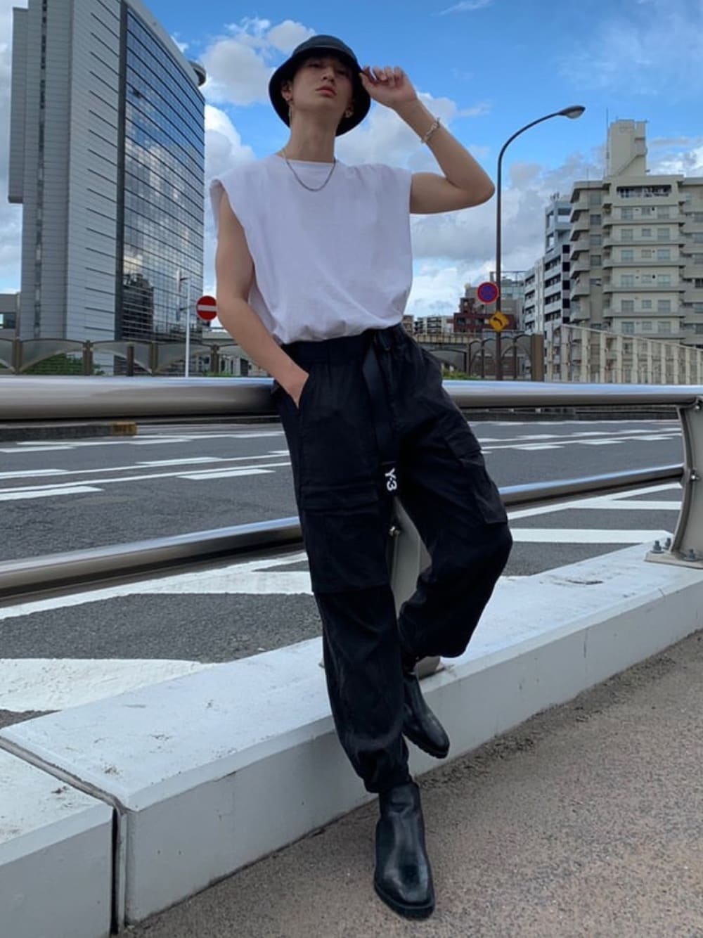 AIVERのカーゴパンツ「CASPER JOHN AIVER テンセルドレープワイドカーゴパンツ」を使ったコーディネート