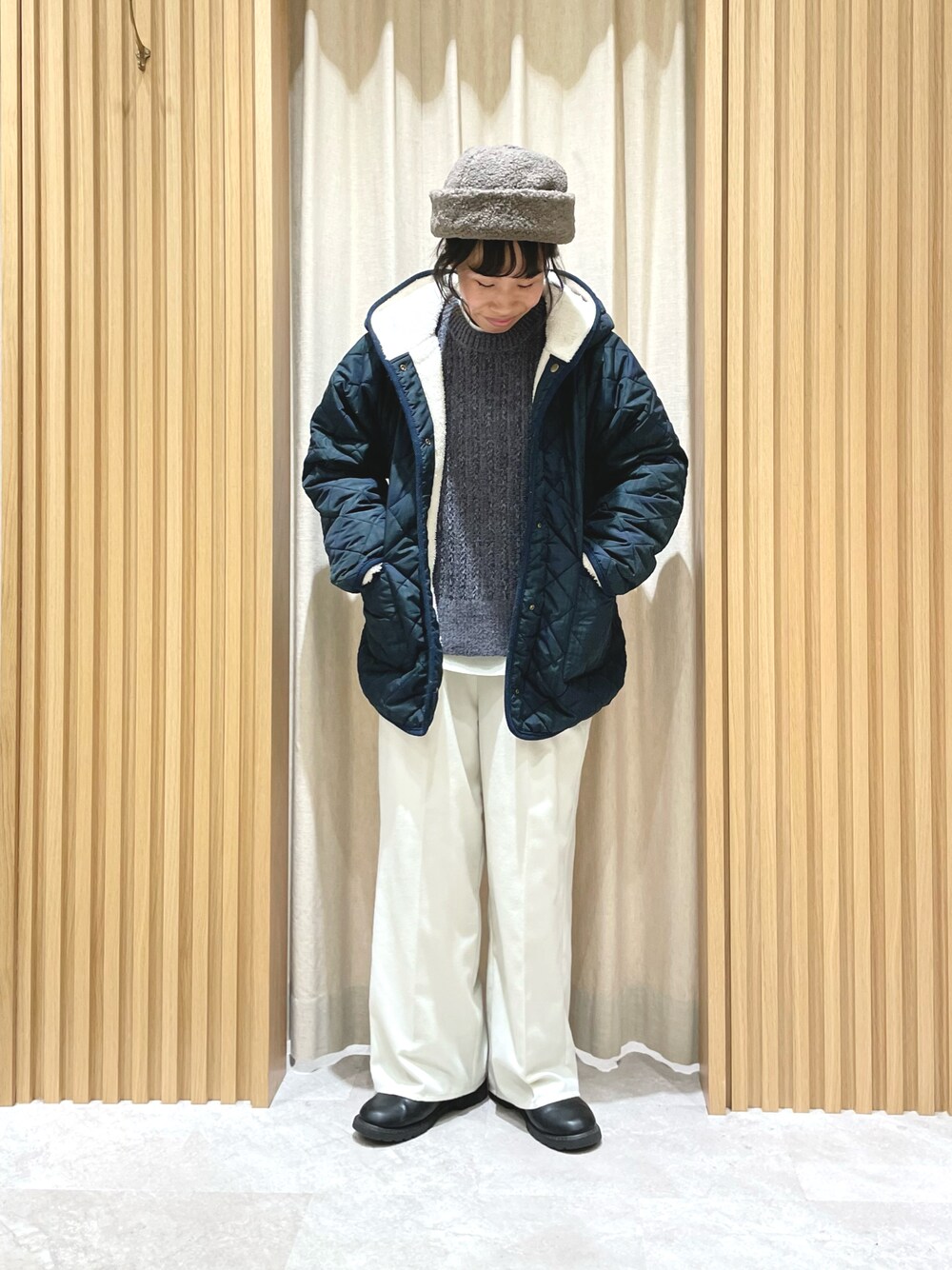 大人カジュアルコーデ🎄 軽くて温かいリバーシブルフードブルゾンˎˊ˗ 後ろにスリットがあるので動きやすく、撥水加工なので雨の日も気軽に羽織れます◎ 一枚で充分温かいので中は軽めにするのが着膨れ防止にもなっておすすめです🎁