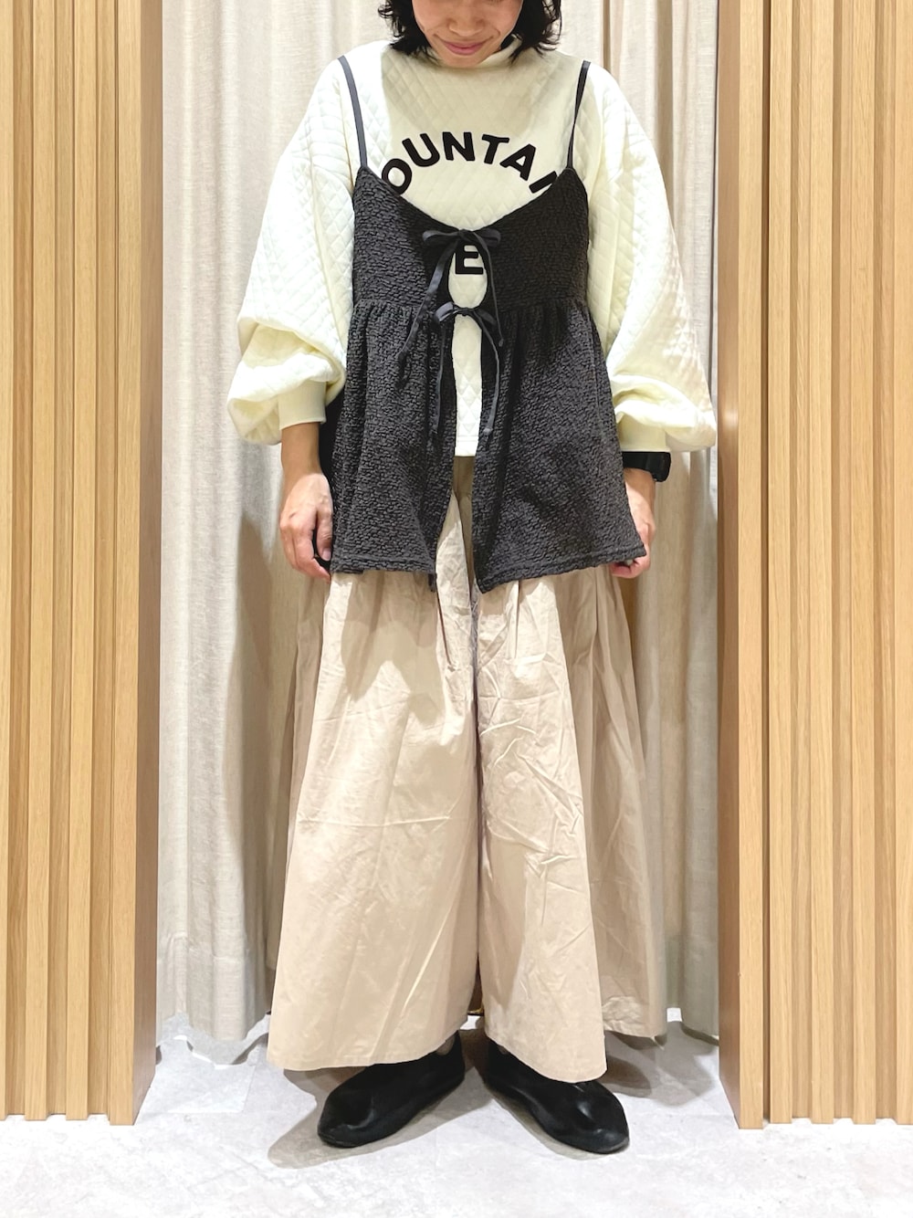 レイヤードコーデ🐿️ スウェットとキャミソールを合わせてカジュアルな印象に𓂃𓈒𓏸 ハカマパンツはウエストなど折らずに着用できます◎