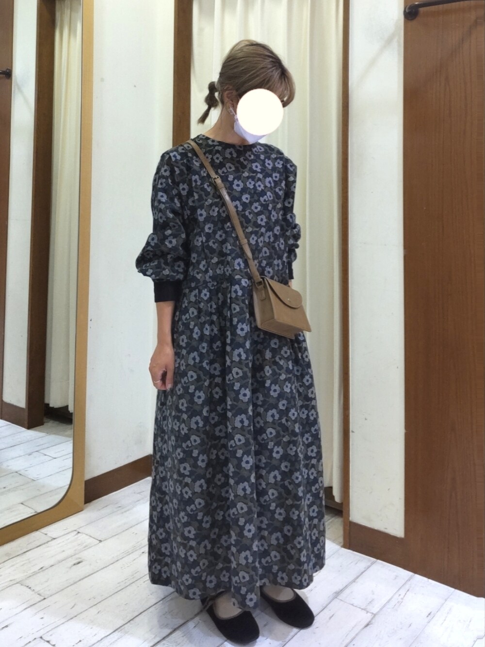 お久しぶりの投稿になりました! まだまだ暑い日が続きますが、秋物のお洋服がたくさん入荷しております♪ 新作のツハルのワンピースを着てみました!水彩画風のフラワー柄プリントが大人可愛いデザインになっております! 後ろリボンになっているのも可愛いポイントです…♡ 丈も身長150センチでフラットシューズと合わせましたが、長すぎる事なく着用できました! 早く涼しくなって秋物たくさん着たいですね!