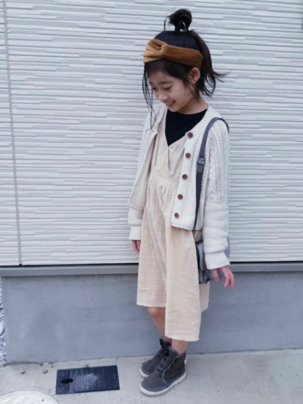 nemoのワンピース「【ママとおそろい】長袖 ウエスト シャーリング カシュクール ワンピース」を使ったコーディネート