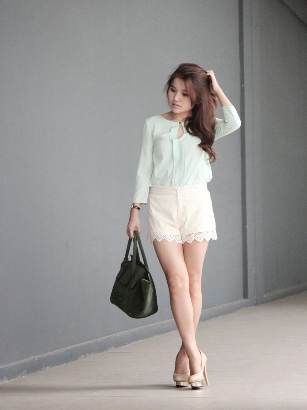Lace and pastel is the best combo if you are confused on how to pair a lace shorts. :)