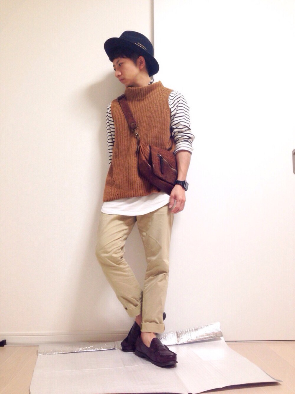 ニットベストをアースカラーでまとめたリラックススタイル(^^)