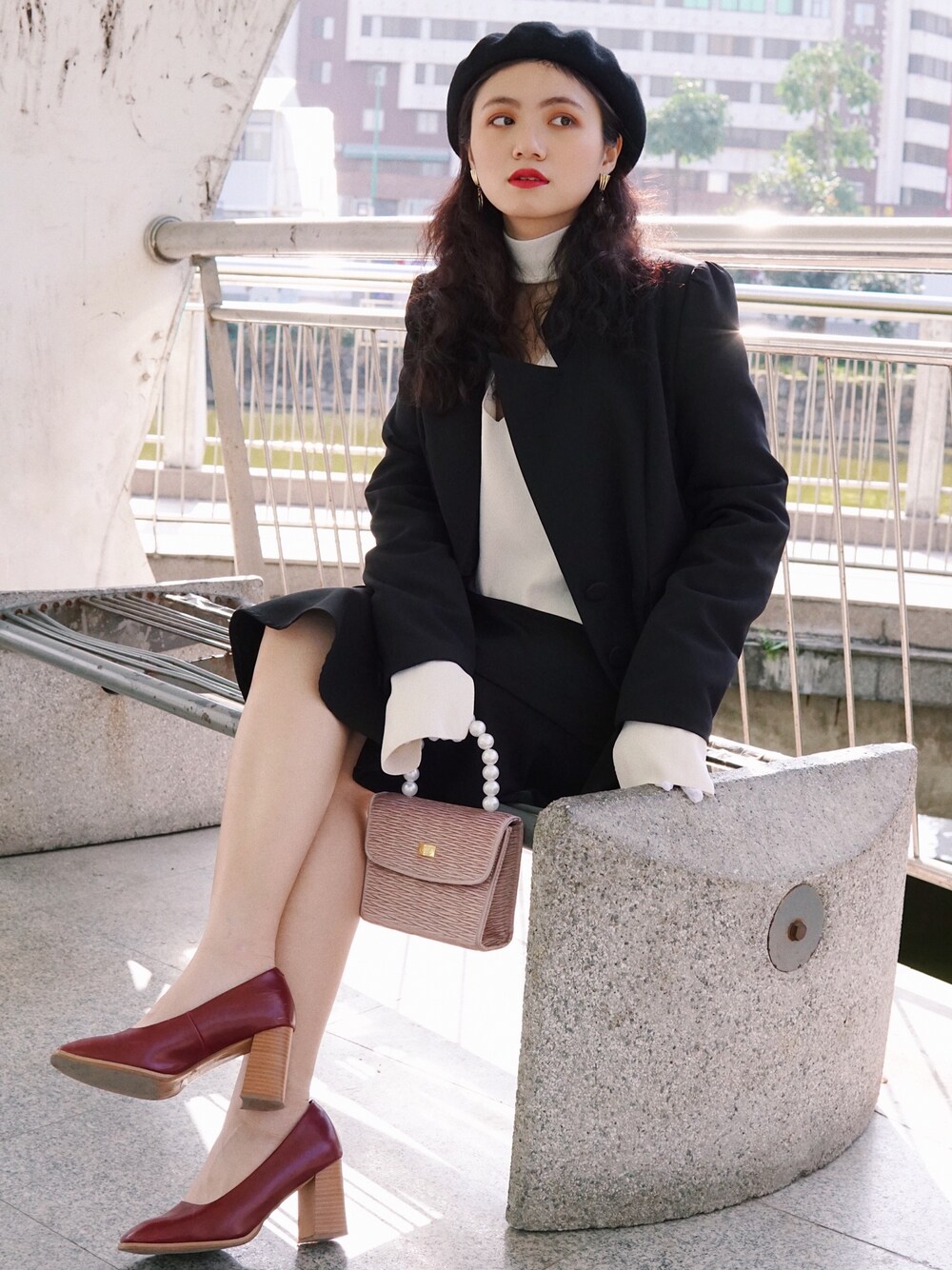 水族馆少女 look | 九十年代复古搭 帽子:优衣库 外套:BLESSED ARE THE MEEK 裙子:JEMO DRESSING 内搭:SHYRLEY YU 手套:giftshop 包包:NaRaYa 鞋子:私物 耳环:vintage 不知道大家有没有发现,九十年代的人,都喜欢穿较为宽大的衣服。西装有垫肩,裤子是喇叭裤...搭配上精美的耳环,感觉像是画报里走出来的人。 这次西装我选择了垫肩黑色西装和鱼尾裙,复古也精致。搭配上v领内搭,内搭袖口微微伸出衣袖,也有一点小可爱。 最后,红色高跟鞋也算让整套搭配亮眼起来,再配上珍珠包,希望你们也喜欢哟:)
