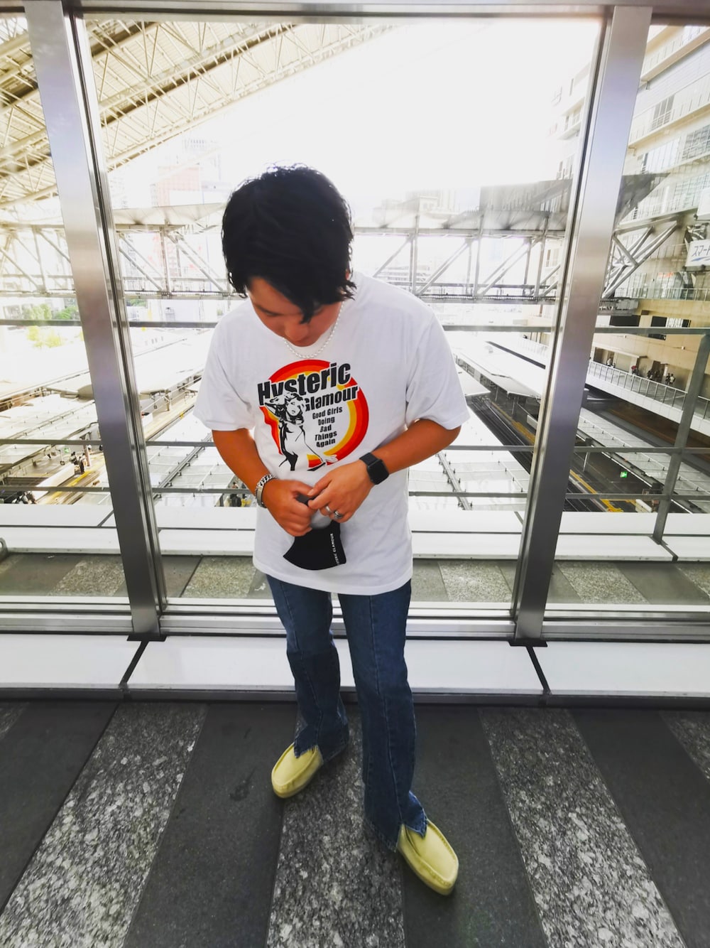 大阪駅で🤳ヒスとデニムとクラークスワラビーの合わせ最高!!