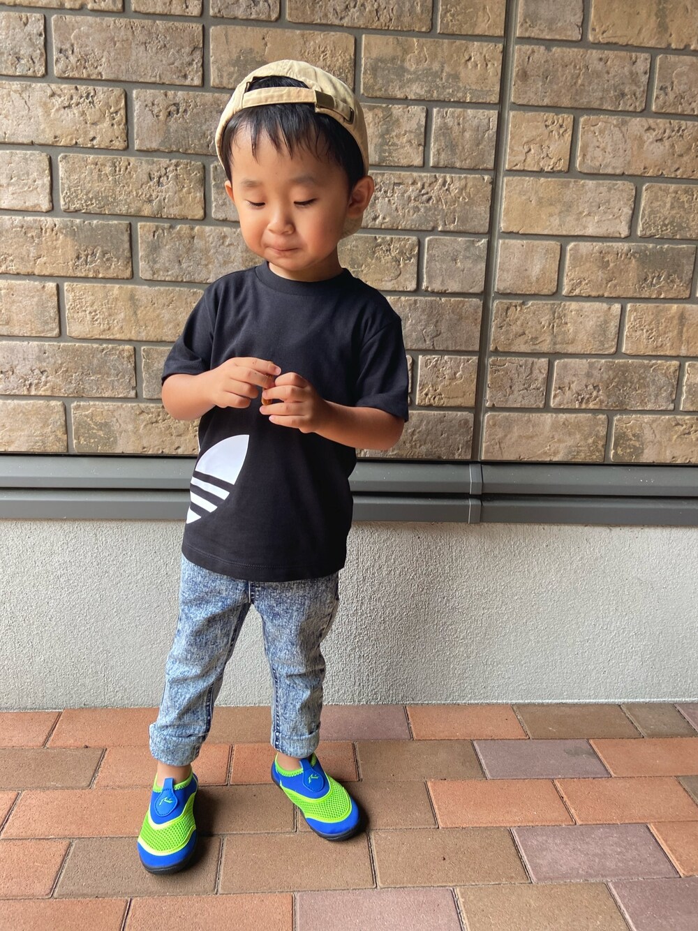 水遊び用の靴履いてます😄 あえて派手にしてみました👟 adidasのTシャツとこのデニムの色の組み合わせが好き♡
