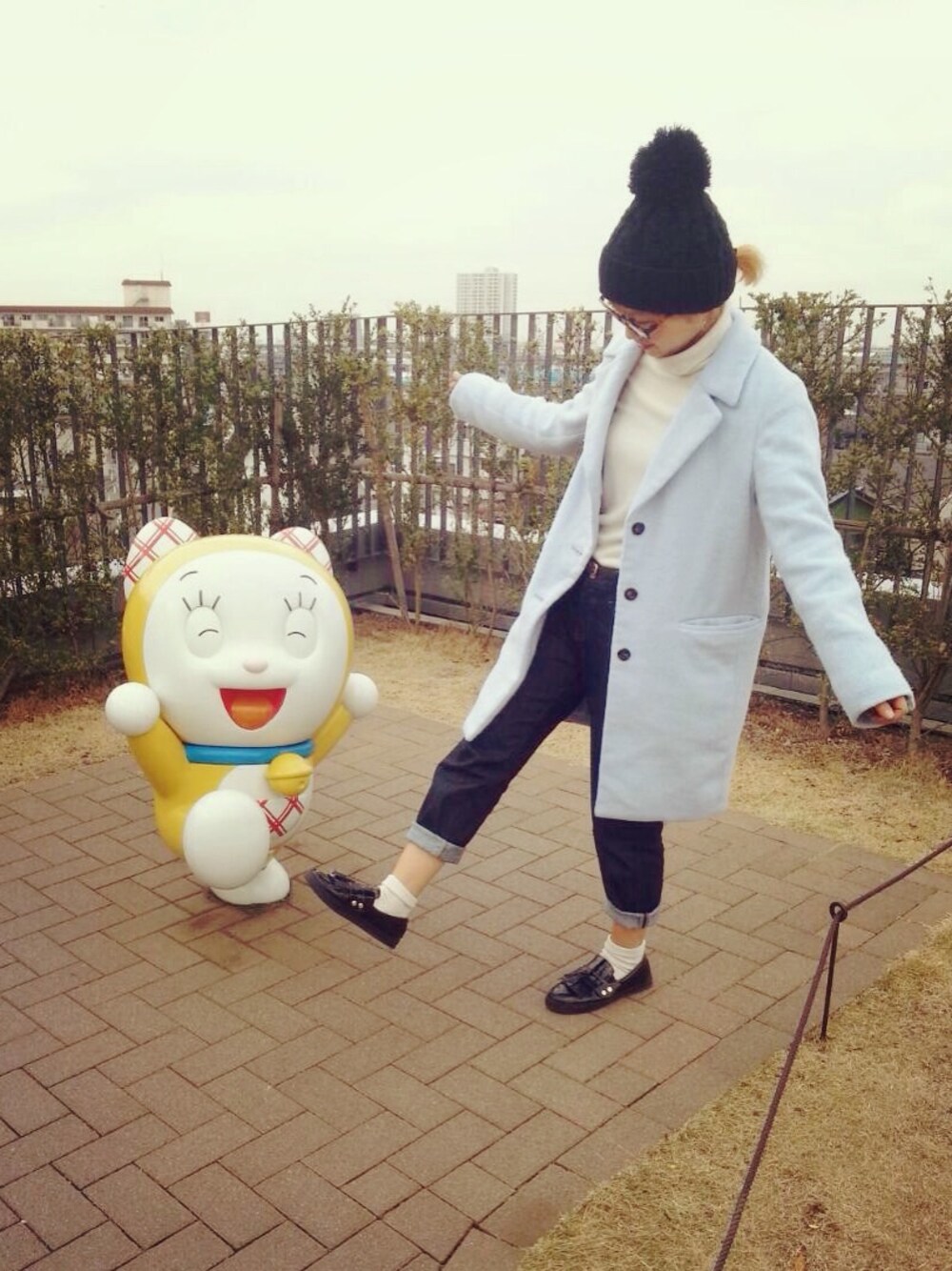 東京2日目 コートと靴は昨日と同じ ドラえもんとコロ助かわいすぎた♡
