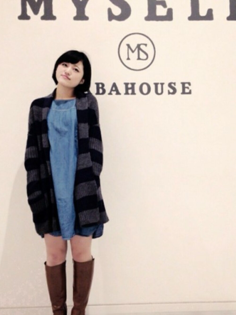 グレー×ネイビーのキレイめ配色のボーダーを引き立たせるために中はサックスブルーのデニムワンピースを合わせてみました☆