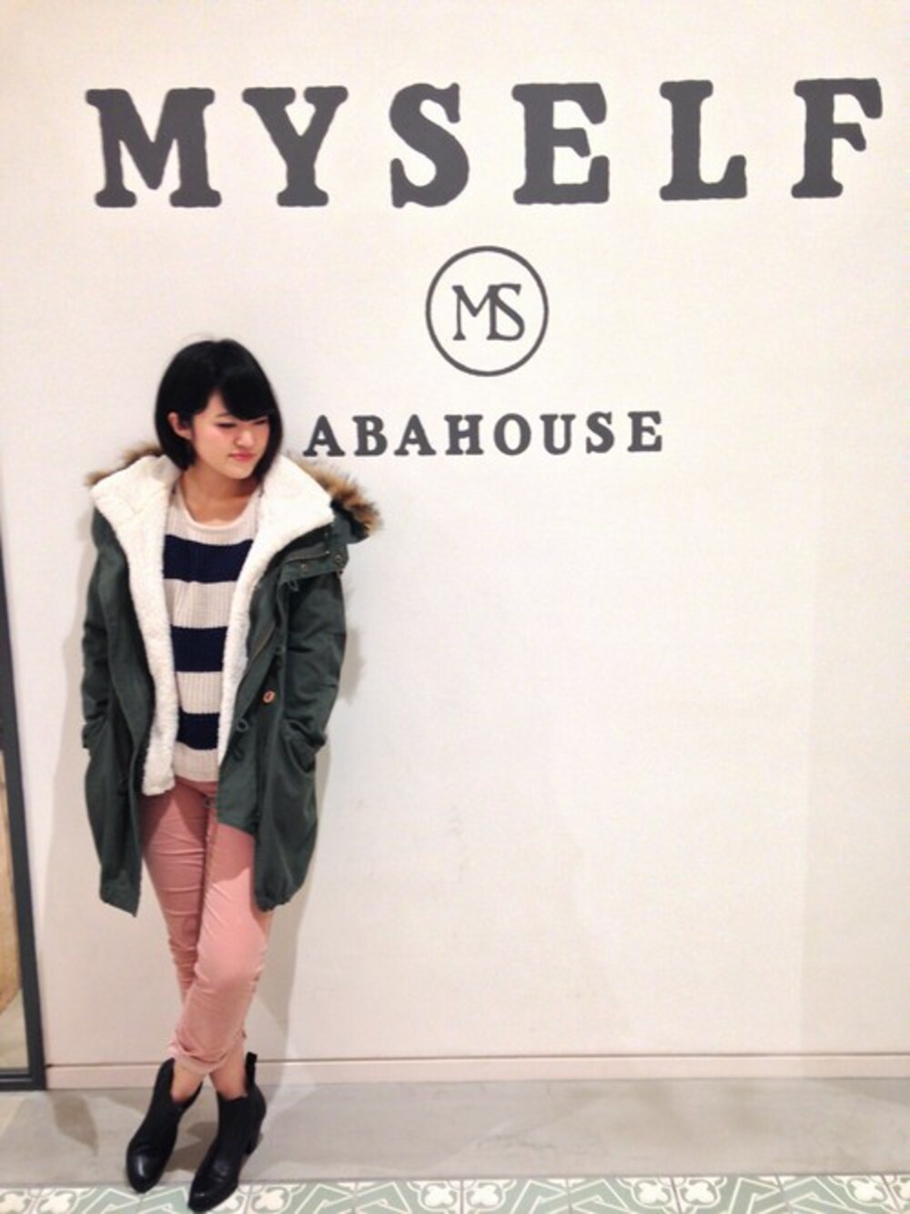 色ものな分、素材で冬らしさを出しました。モッズコートはモコモコがライナーになっているので春も着れちゃいます!