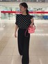 こんにちは! 本日もご覧いただきありがとうございます😊 今日は韓国ファッションということで、トップスとバッグをドット柄にしてみました🩵 DHOLICで上下セットで購入したものです!