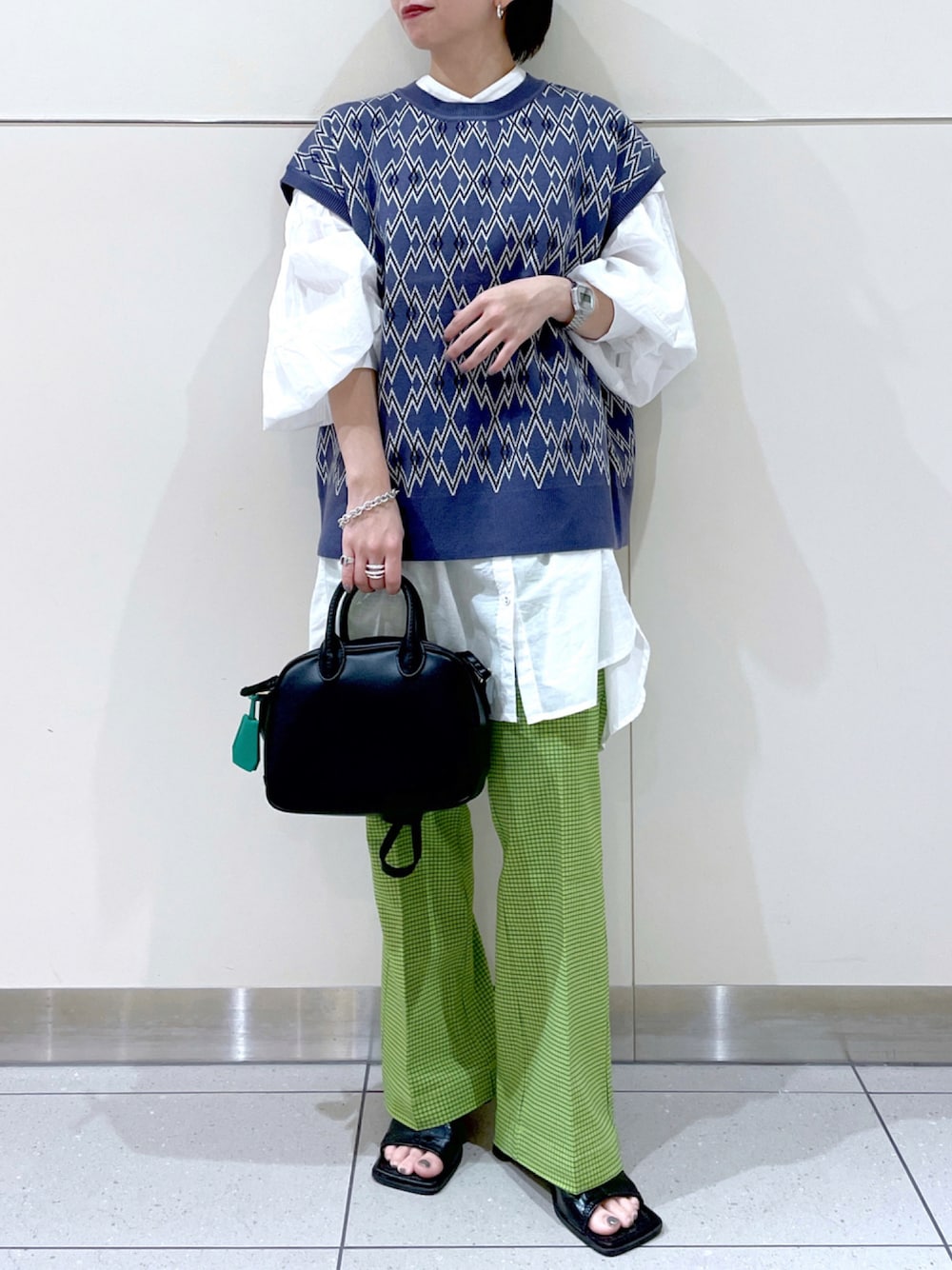 むーちゃん(niko and...イオンモール鶴見緑地)のベスト「洗えるアソートジャカードニットベスト」を使ったコーディネート