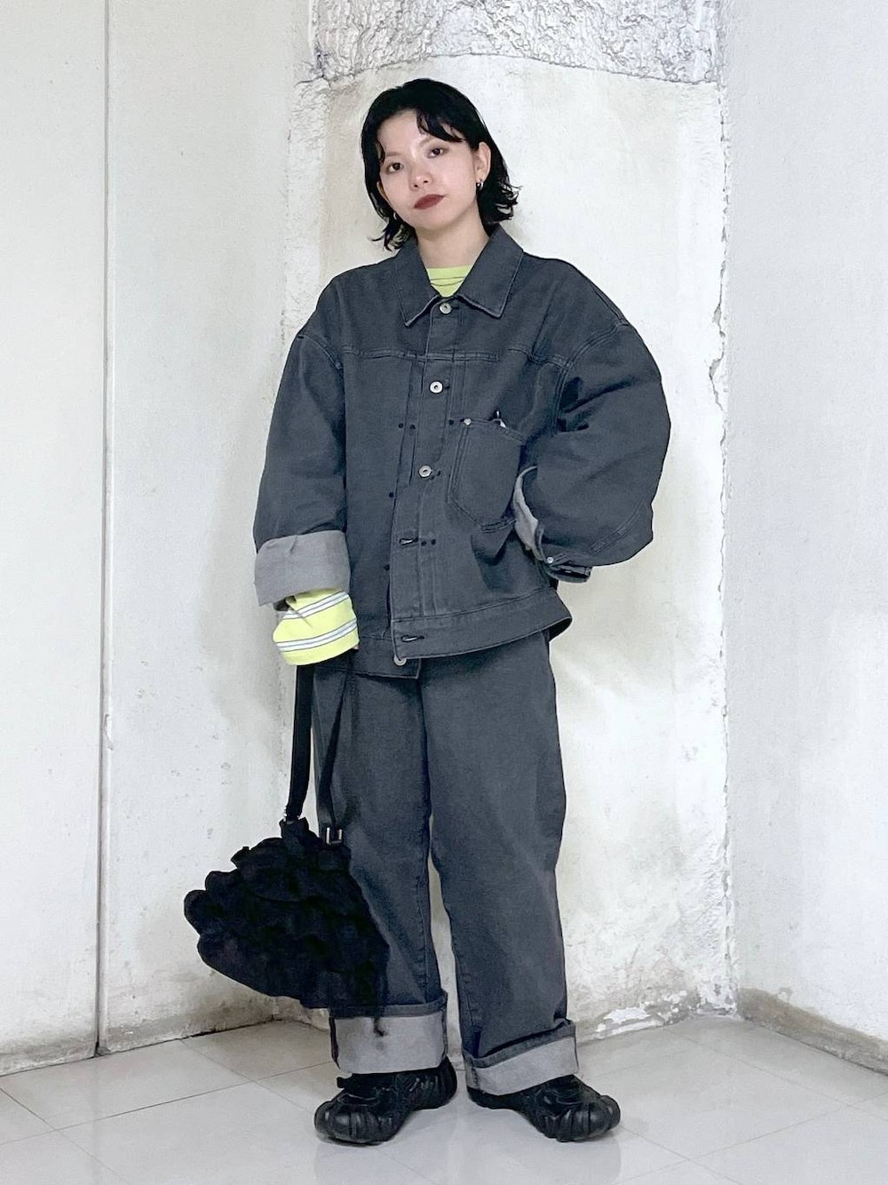 メンズのデニムアイテムでセットアップコーデ🩶 オーバーサイズが女性でも可愛いです♡ パンツはウエストが緩いので、ベルトをしてます!