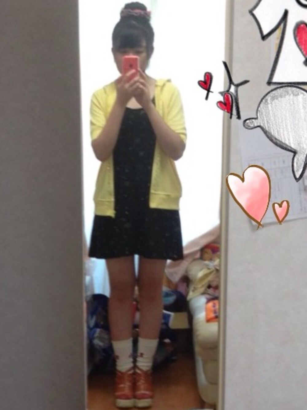 夏期講習の日コーデヽ(・∀・)ノ ワンピース…Honeysでセットで2000円くらい ソックス…ノーブランド250円 シュシュ…ディズニーランドで1200円 このワンピは実は宇宙柄! 黒に金色のペイントで。 着やすくてシルエットお気に入り♪ レピピのパーカーは実はこれとは少し違うけどだいたいこんなかんじです! 最近は学校あってほとんど制服なので、夏休みの塾コーデが大半です(>_<)笑