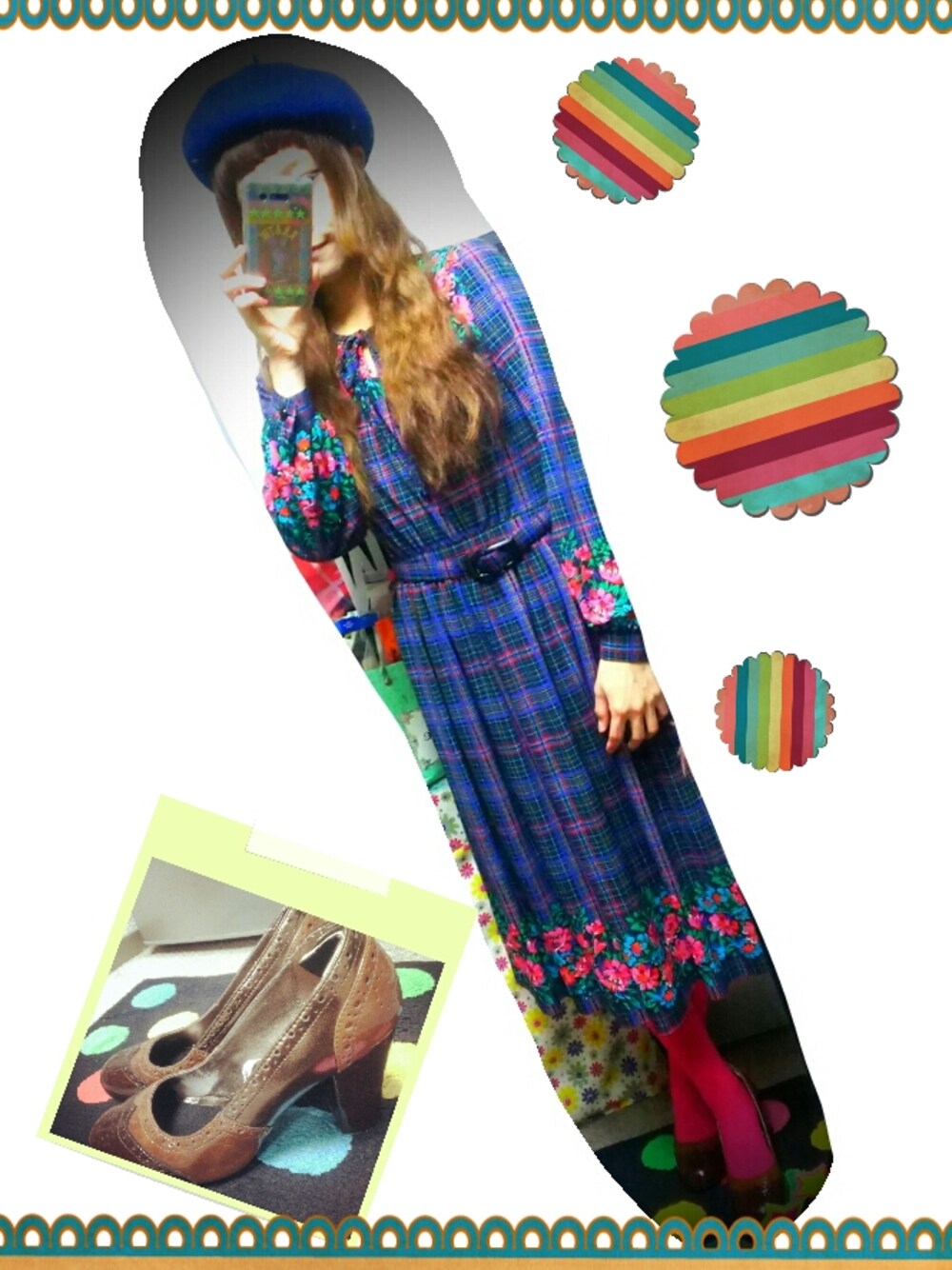 ベレー帽✿楽天市場で1000円位 ワンピース✿古着やさんで5000円位 ハイヒール✿古着やさんで7000円位 カジュアル結婚パーティーでした♡